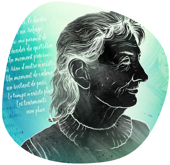 « Pour moi, le dessin c'est un refuge qui me permet de m’évader du quotidien. Un moment précieux où rien d'autre n'existe. Un moment de calme, un instant de paix. Le temps n'existe plus. Les tourments non plus. »- IsabeIle Lenoir, paire aidante chez PASM |